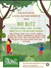 Bio BlitzFriday, April 24, 2026Event by the Friends of Hillside Gardens and the Palace Road Nature Reserve to find flora and fauna and log this for future protection. |