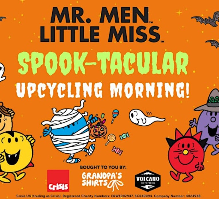 Join the Mr. Men Little Miss gang for a fang-tastic morning of upcycling, shopping and spooky giggles - hosted by Crisis featuring Grandpa’s Shirts at Volcano Coffee Works Café, West Norwood.