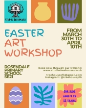 easter art workshopMonday, March 30, 2026Studio Treehouse are running a daily creative arts workshop for children aged 4-12 during Easter school half term from Monday 30 March to Friday 10 April. |