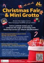 hristmas Fair and Mini GrottoMonday, December 15, 2025Active Lambeth is hosting a Christmas Fair and Mini Grotto at West Norwood Health & Leisure Centre this December, inviting local families to enjoy festive fun in the lead-up to Christmas. |