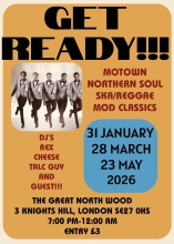 get ready!!!Saturday, March 28, 2026Get Ready returns with regular DJ’s Rex Bendon, Cheeseman and Sean Patrick with a guest DJ. All music is played on original vinyl. |