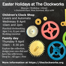 children's clock shop at the clockworksWednesday, April 8, 2026This half term, join The Clockworks for a children's hands-on clockmaking workshop. For all ages. Free to attend, but places are limited: book online (details below). |