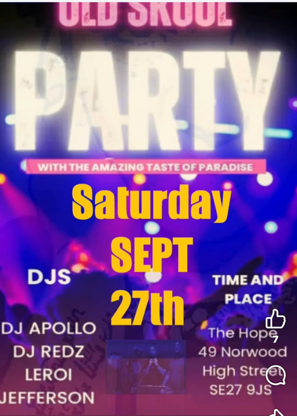Join The Hope in West Norwood for an evening of music and dancing on Saturday 28 September. The Taste of Paradise crew will be DJing from 8pm until late, playing a selection of old skool classics.