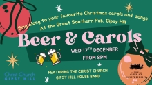 Beer & Carols at The Great SouthernWednesday, December 17, 2025The Great Southern in Gipsy Hill will host an evening of festive singing with Beer & Carols, a relaxed and lively Christmas event for the local community. Enjoy your favourite Christmas carols and songs, accompanied by the Christ Church Gipsy Hill House Band. |