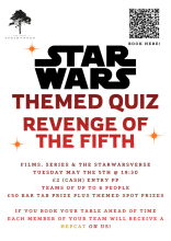 star wars themed quizTuesday, May 5, 2026The themed quiz returns with all things Star Wars - films, series & The Starwarsverse. |