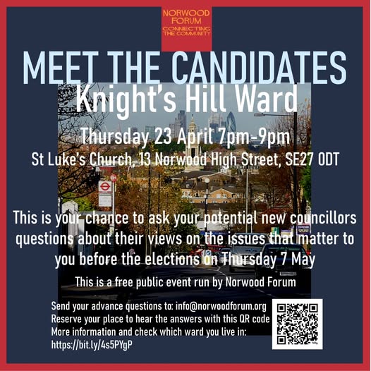 Local elections are coming up on Thursday 7 May. Norwood Forum is hosting a series of 'Meet the Candidate' free public events so the community can speak directly to the candidates.