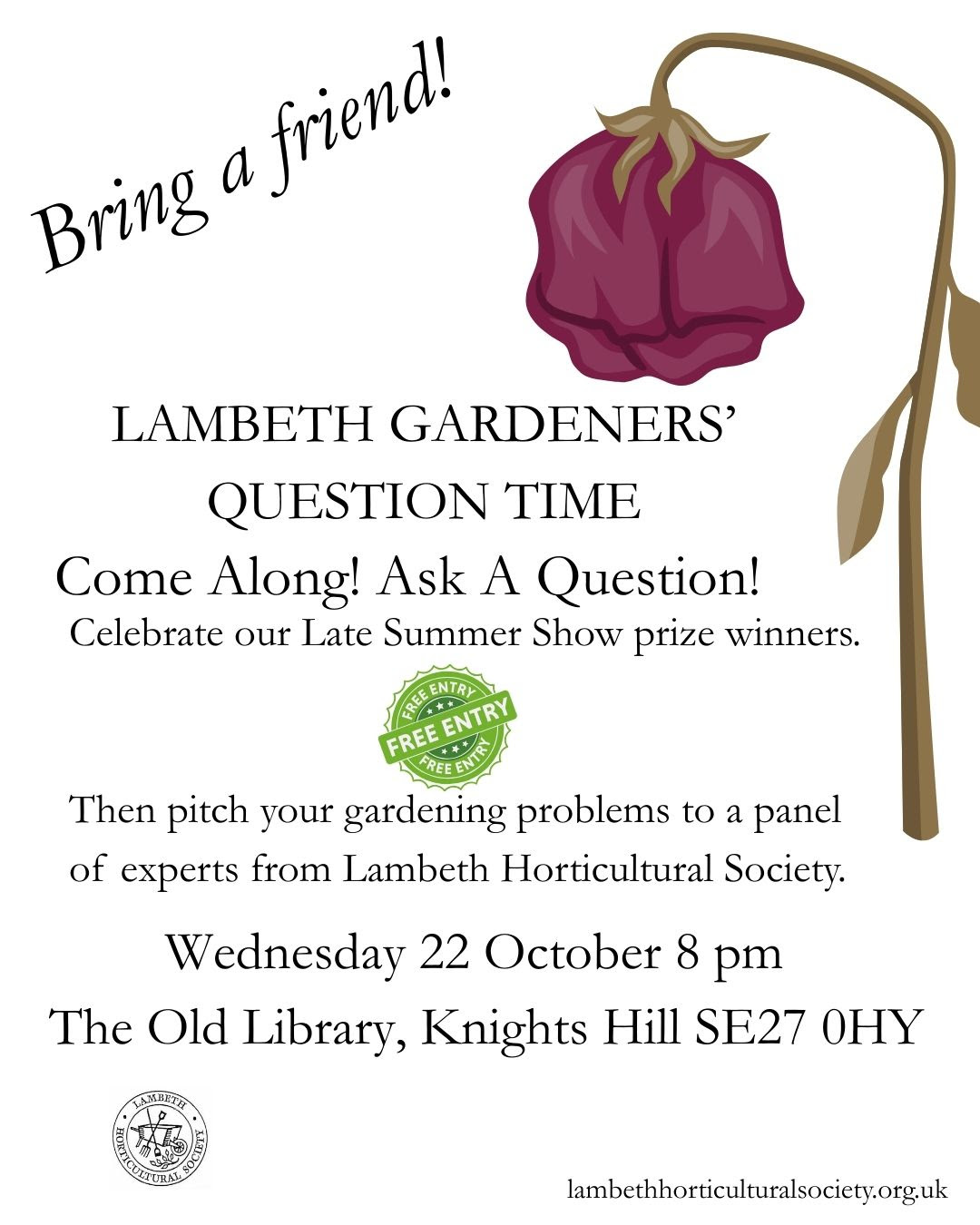 Following the awards, the Society will host its first-ever LHS Gardeners’ Question Time, featuring a panel of expert members offering advice on all kinds of horticultural quandaries.