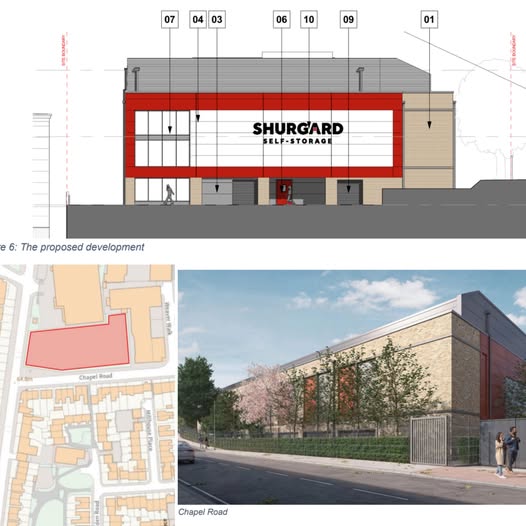 The proposed development for a new Shurgard storage facility on the corner of Knight's Hill and Chapel Road, and neighbouring the existing Yellow Box self store facility, has been approved this week by Lambeth's Planning Applications Committee. So this long vacant site may at last be close to being developed.